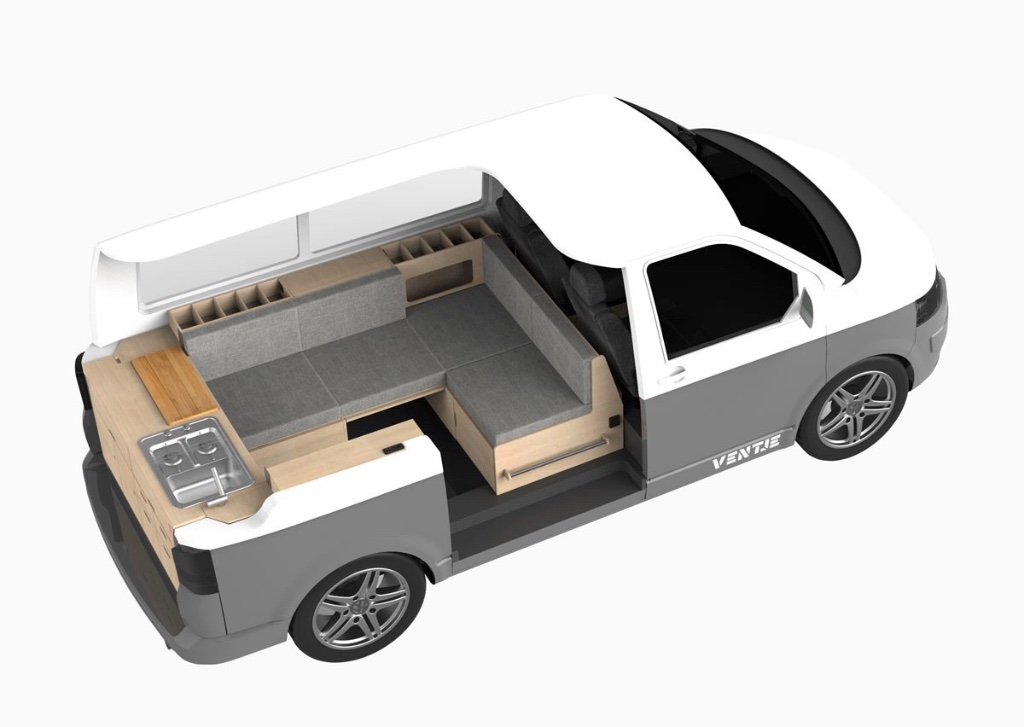 Hier vinden we toch wel erg veel mooie ideeën voor een camperinrichting! Zeker in combinatie met een hefdak dat achter omhoog gaat.
