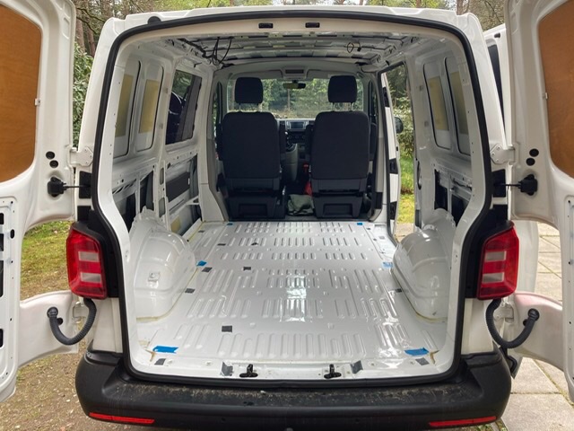 Deze week is mijn VW T6 bj 2015 geleverd en heb ik de binnenzijde volledig gestript.