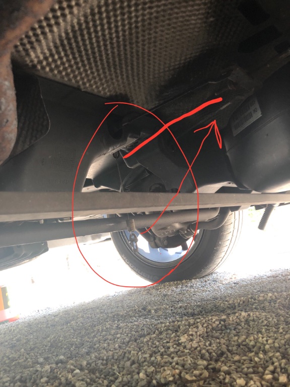 Het zit meer achterin, ter hoogte van de achterwielen.