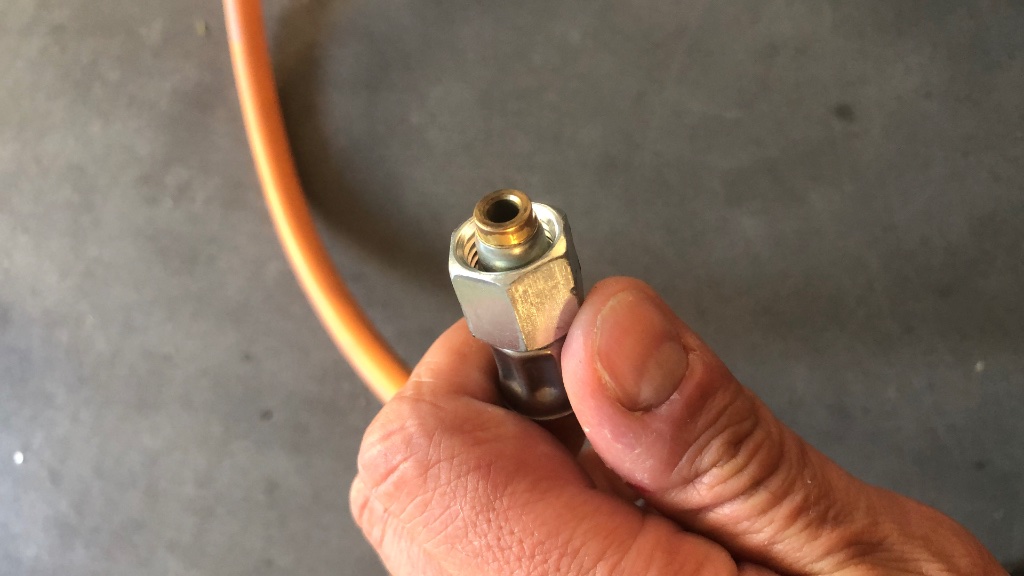 Die slang zal het inderdaad zijn. Nu heb ik ook de drukregelaar vervangen middels een originele haakse van GOK. Die heb ik al in huis.