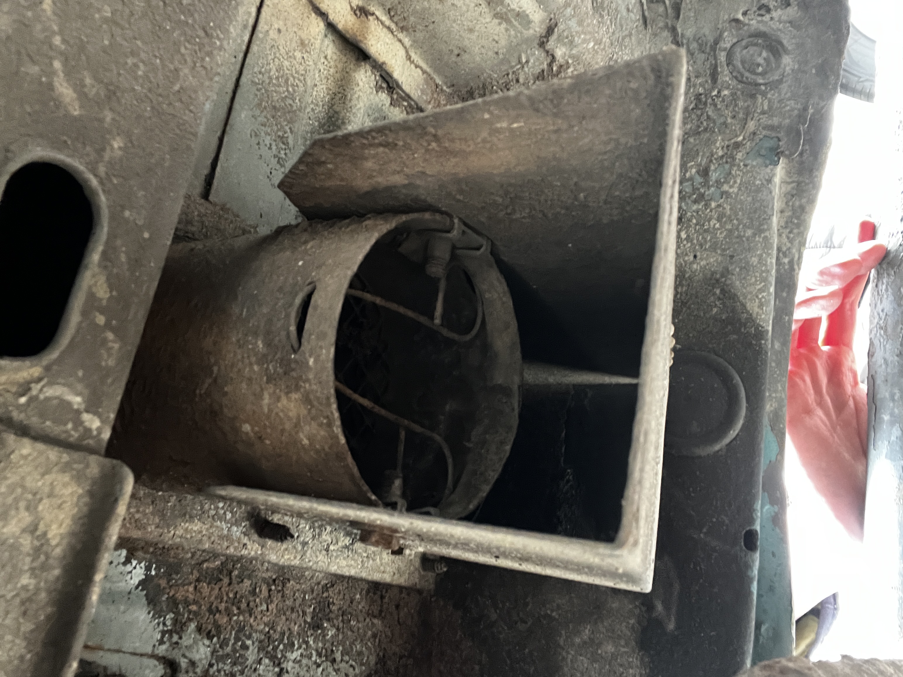 Nu vraag ik me af: hoe zuigt de koelkast (compressor) lucht aan en hoe doet ie dat afblazen. Ik heb al door dat onder de bus een bescherm plaatje zit met daar onder een compleet verteerde schuimrubber vulling. Volgens mij komt daar warmte uit. Klopt dat? En waar zit dan de inlaat?