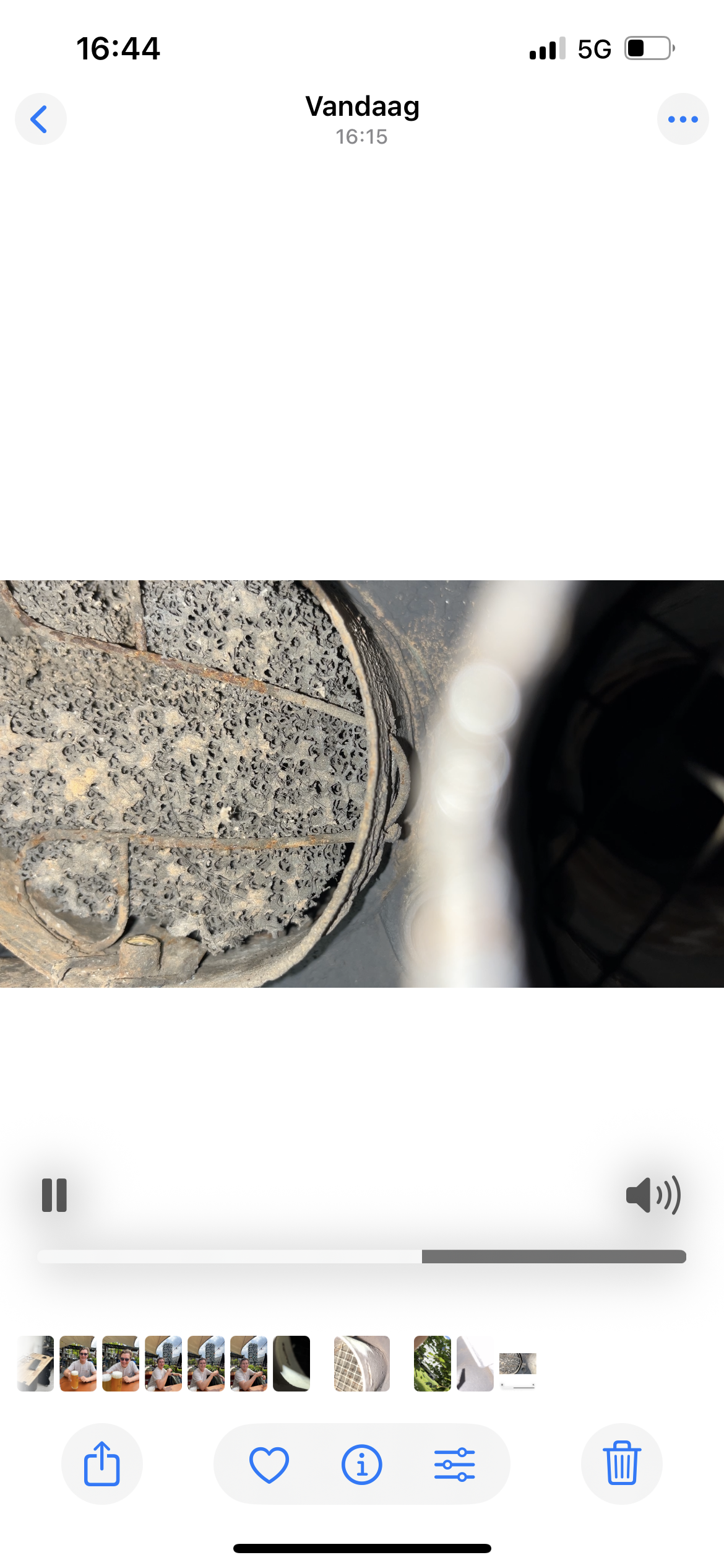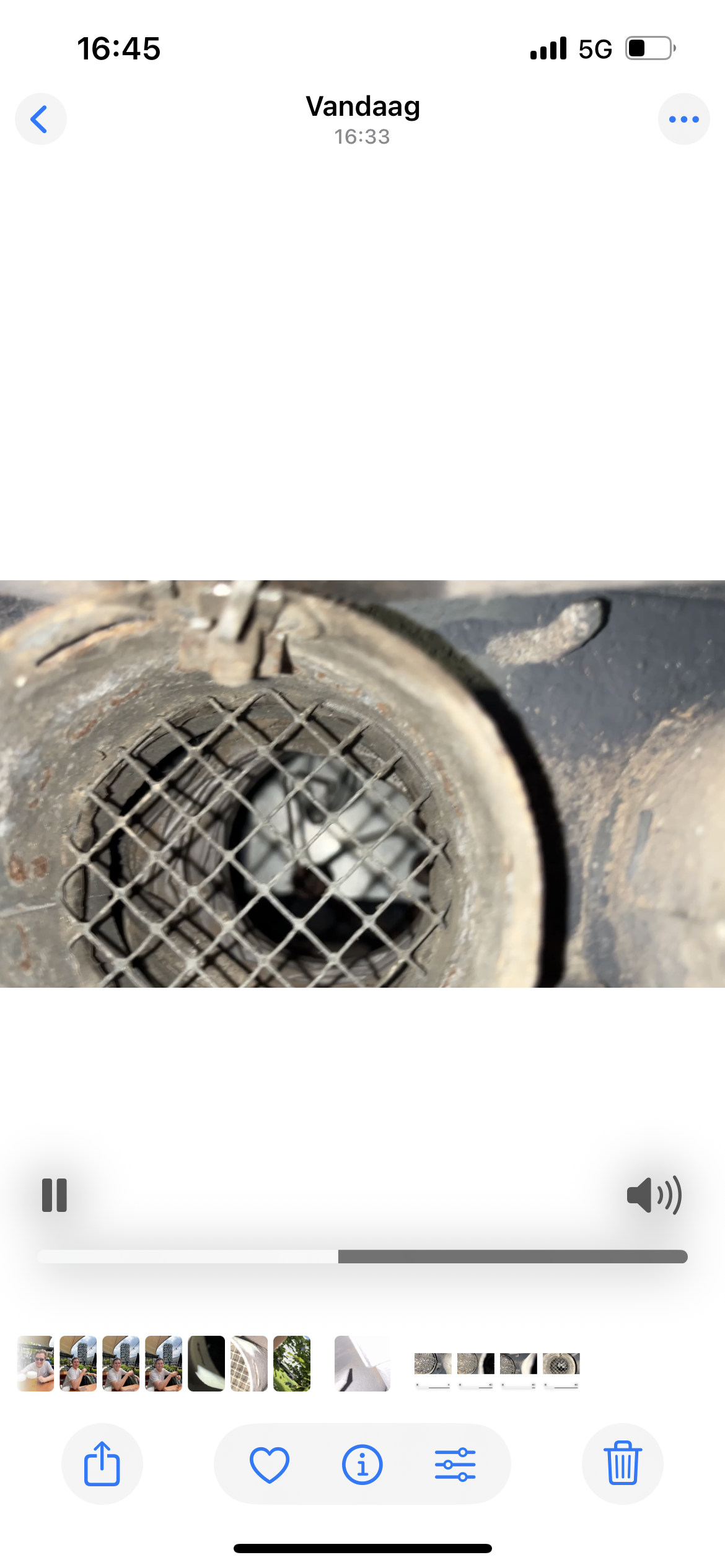 Bedankt voor de reacties. Ik heb zojuist onder de bus gelegen en de filters kunnen verwijderen. Deze waren compleet verdroogd en vol (zie foto). Het verwijderen van de zwarte kap is helaas niet gelukt. De bouten draaien aan de binnenkant mee… ik kan er met mijn hand gelukkig ook bij/in.
