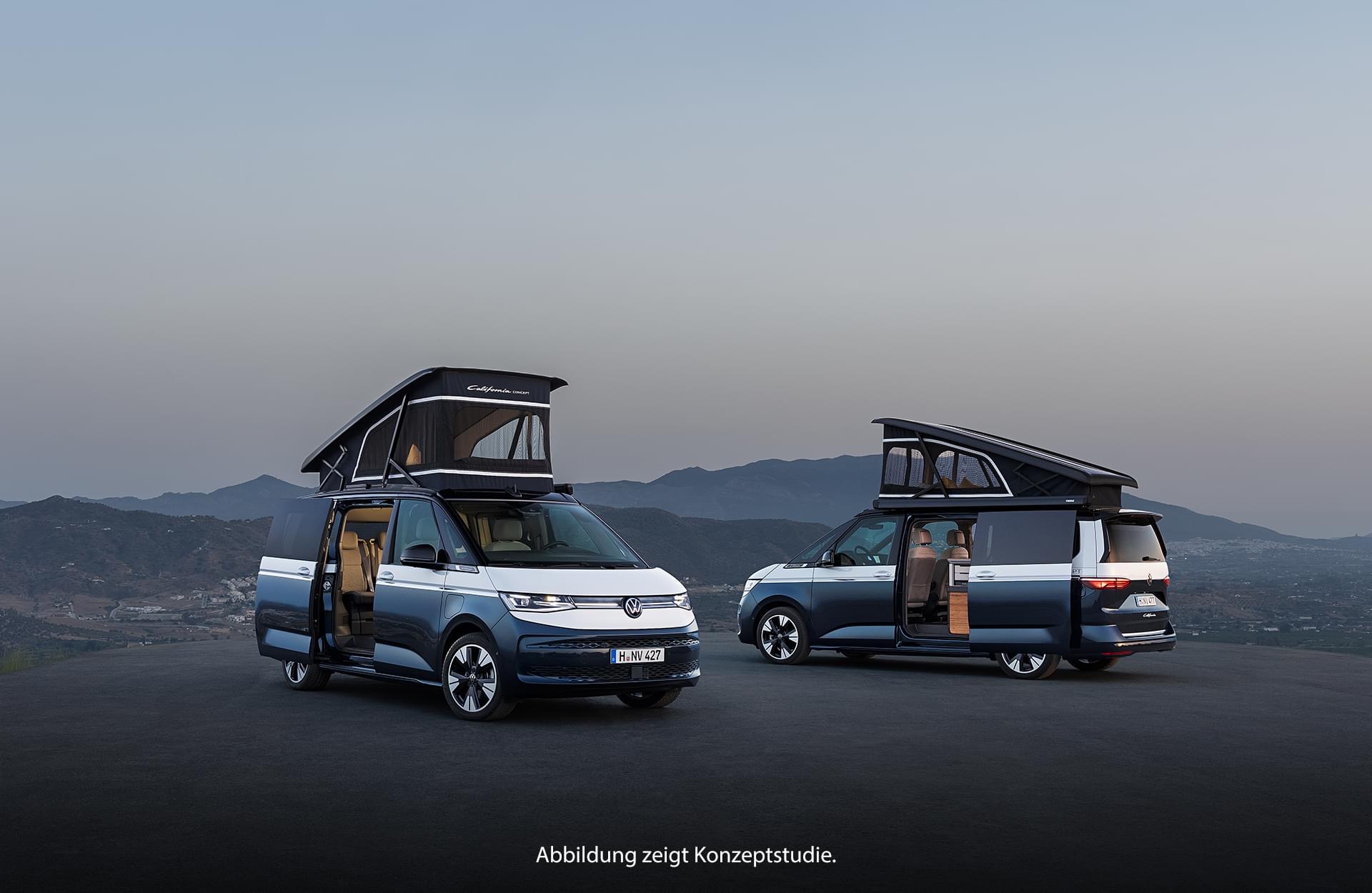 Het viel me nog op dat het 2-kleurenschema anders is dan bij de Multivan. Bij de California Concept is het neusje ook wit.