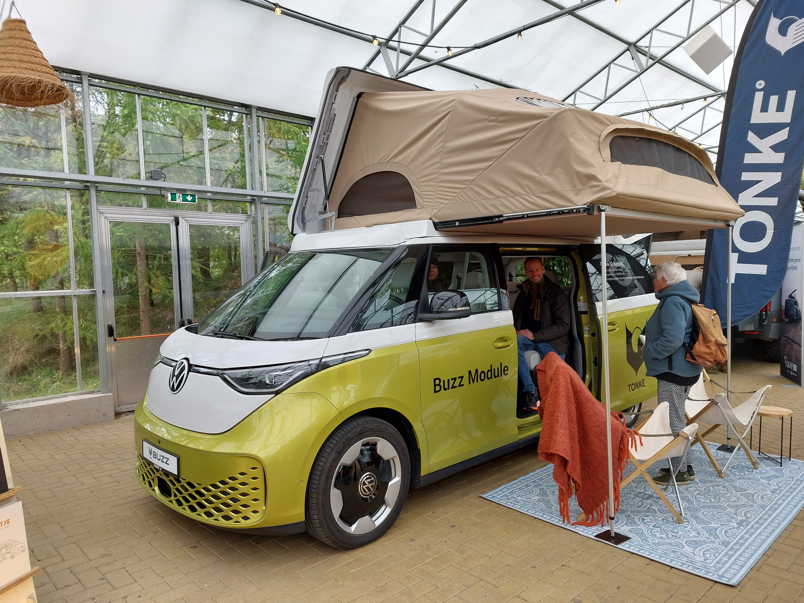 Op de beurs stond een Ventje ID BUzz met een soort combinatie van hefdak en daktent. Meer een soort Engels hefdak waar de daktent dan naar 1 zijde toe open klapt. Van binnenuit bereikbaar.