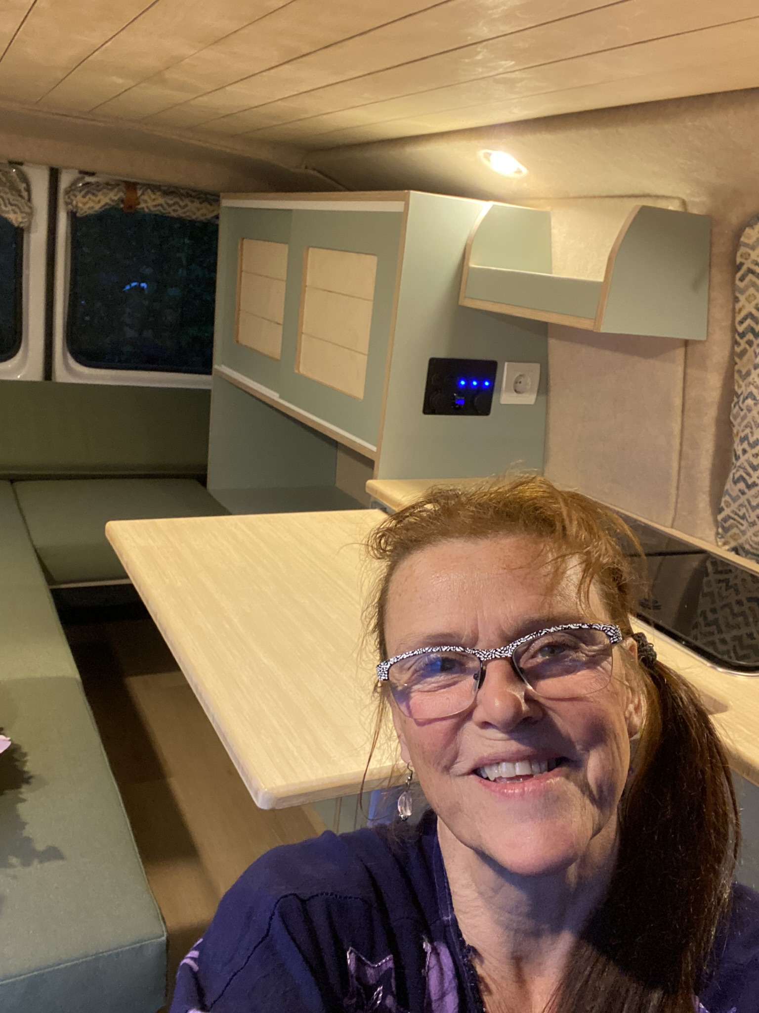 Twee erbij zetten was geen optie: dan wordt de “authenticiteit” van VW AANGETAST! Dit had ik eventueel aan kunnen vechten, maar door tijdsdruk van een Expositie afspraak ging dat even niet, dan maar een stoel en 2 personen op het kenteken, balen dus! Hem op 16 juli 2024 opgehaald bij Buscamper op maat in Nijkerk en zaterdag 10 augustus vertrokken naar Oostenrijk en Italië.