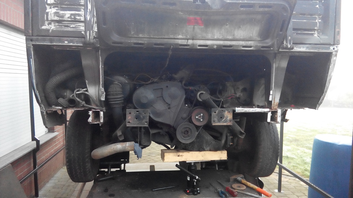 Onderaan was het chassis nog in heel goede staat , roestvrij . Maar alle onderdelen van de ophanging ,remmen, enz was er erg aan toe , compleet verroest , iedere bout , moer , enz zat gewoon vastgeroest . Enige manier om alles los te krijgen was afbranden, afslijpen , afzagen...