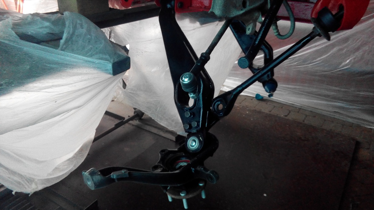Na het lakken de nieuwe rubbers in de delen geperst , alle ophangingsgewrichten ,stuurgewrichten vervangen door nieuwe , en dan terug gemonteerd.