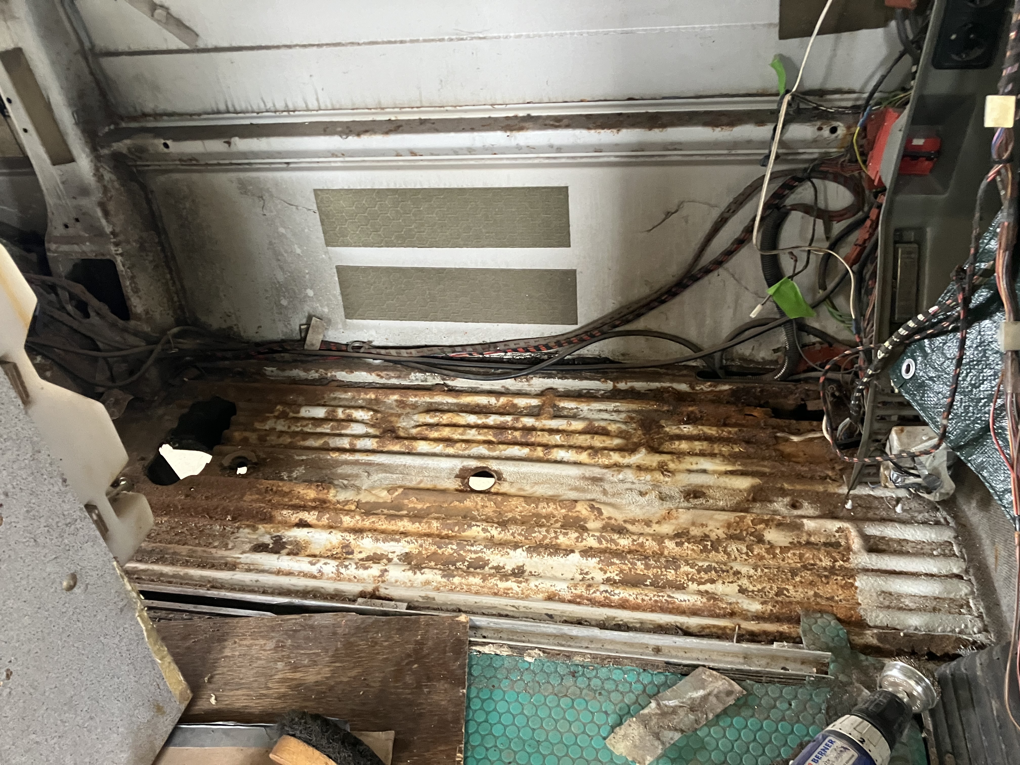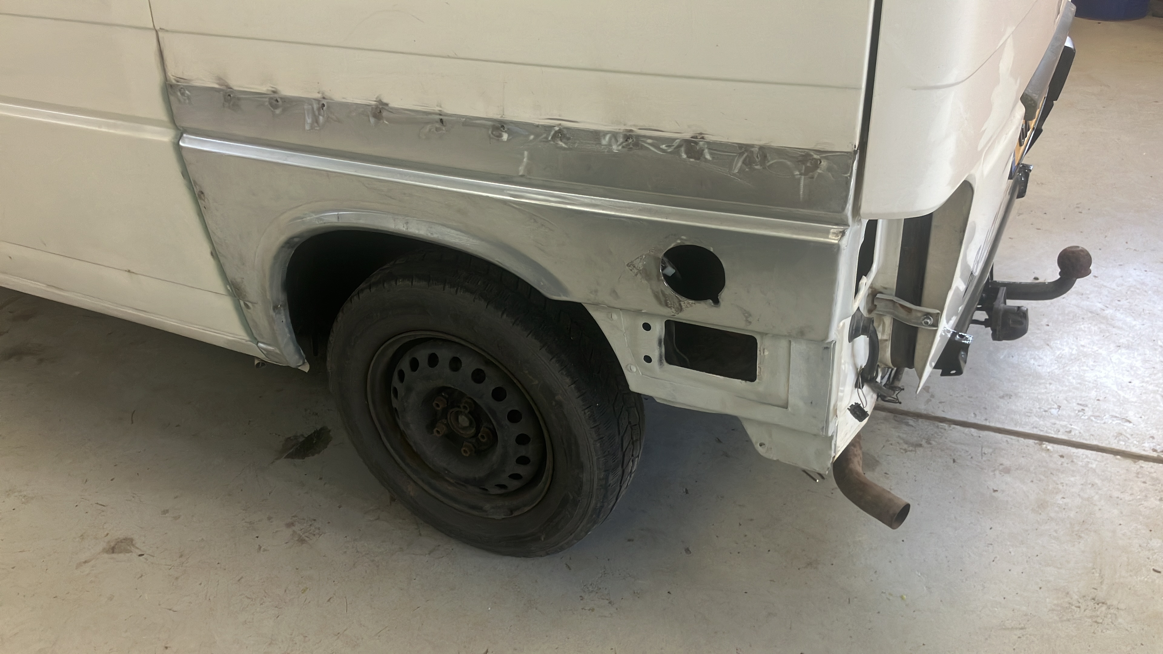 Dat project begin maart dit jaar en is wat uit de hand gelopen. Alleen de onderkant spuiten is veranderd in hele bus spuiten, binnenkant volledig leeg, vloer en wielkasten van binnen weer roestvrij en gaten dicht maken.