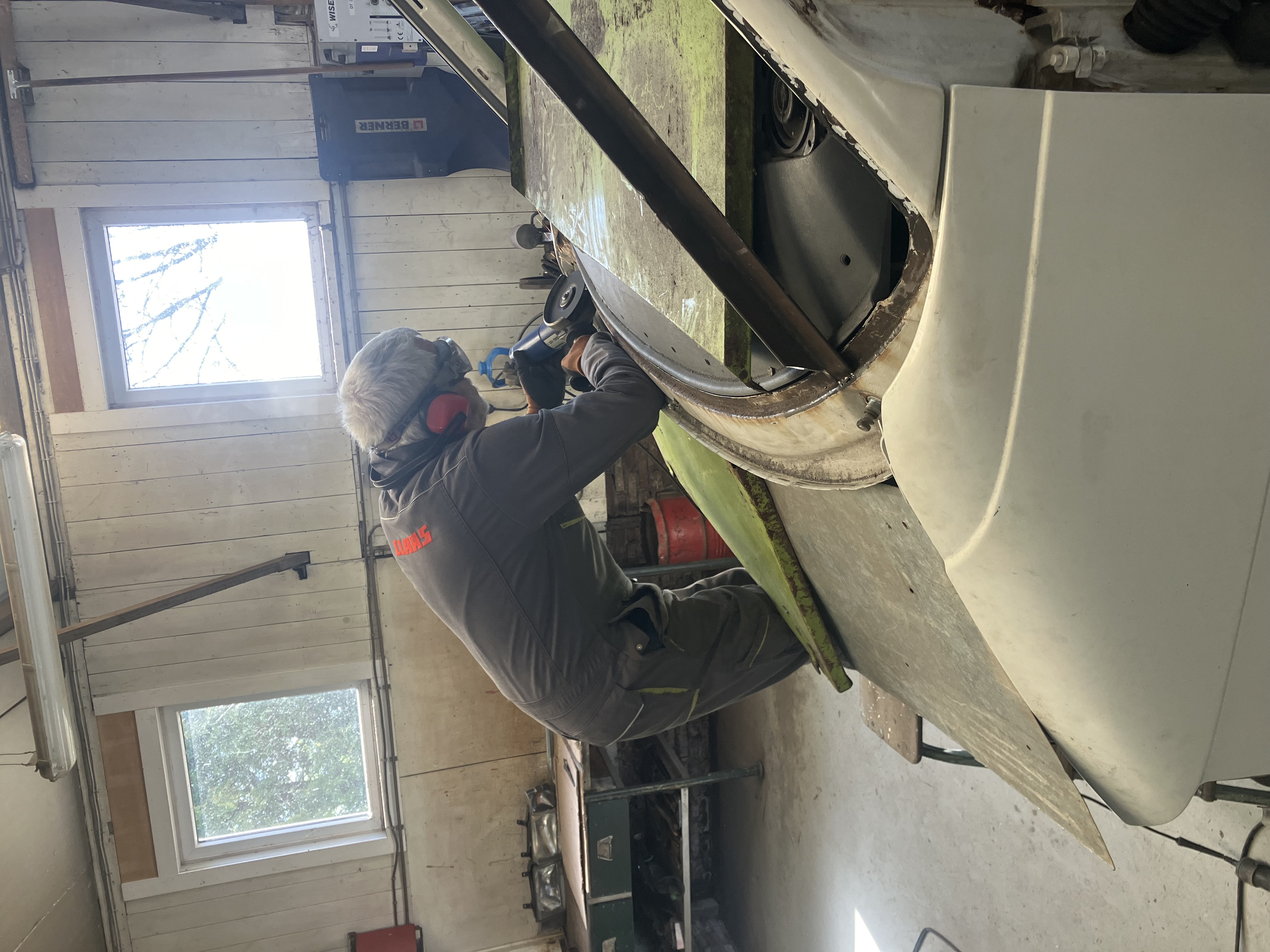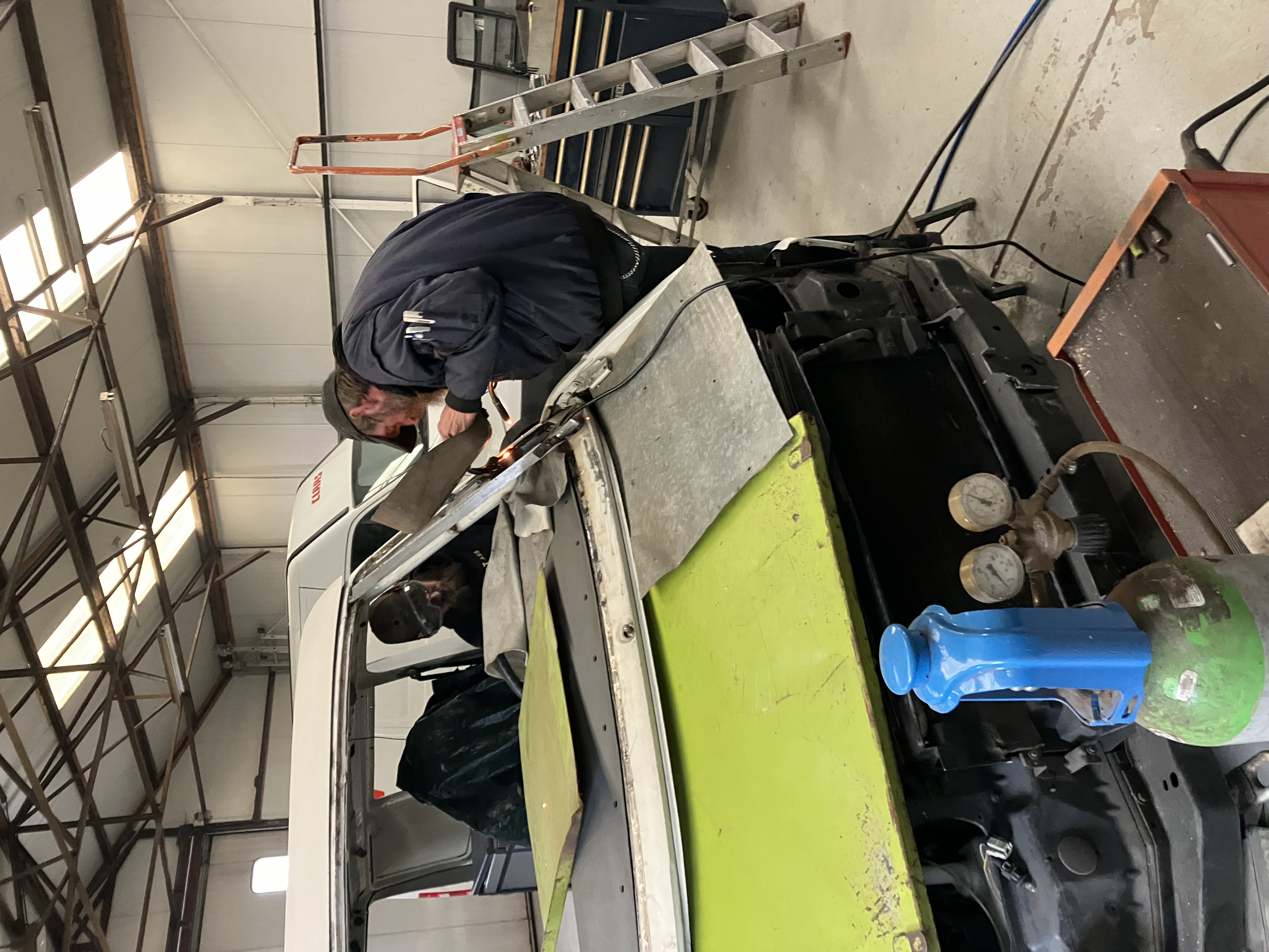 A stijl uit donor bus geslepen en erin gezet, met hulp van ervaren lasser Richard.