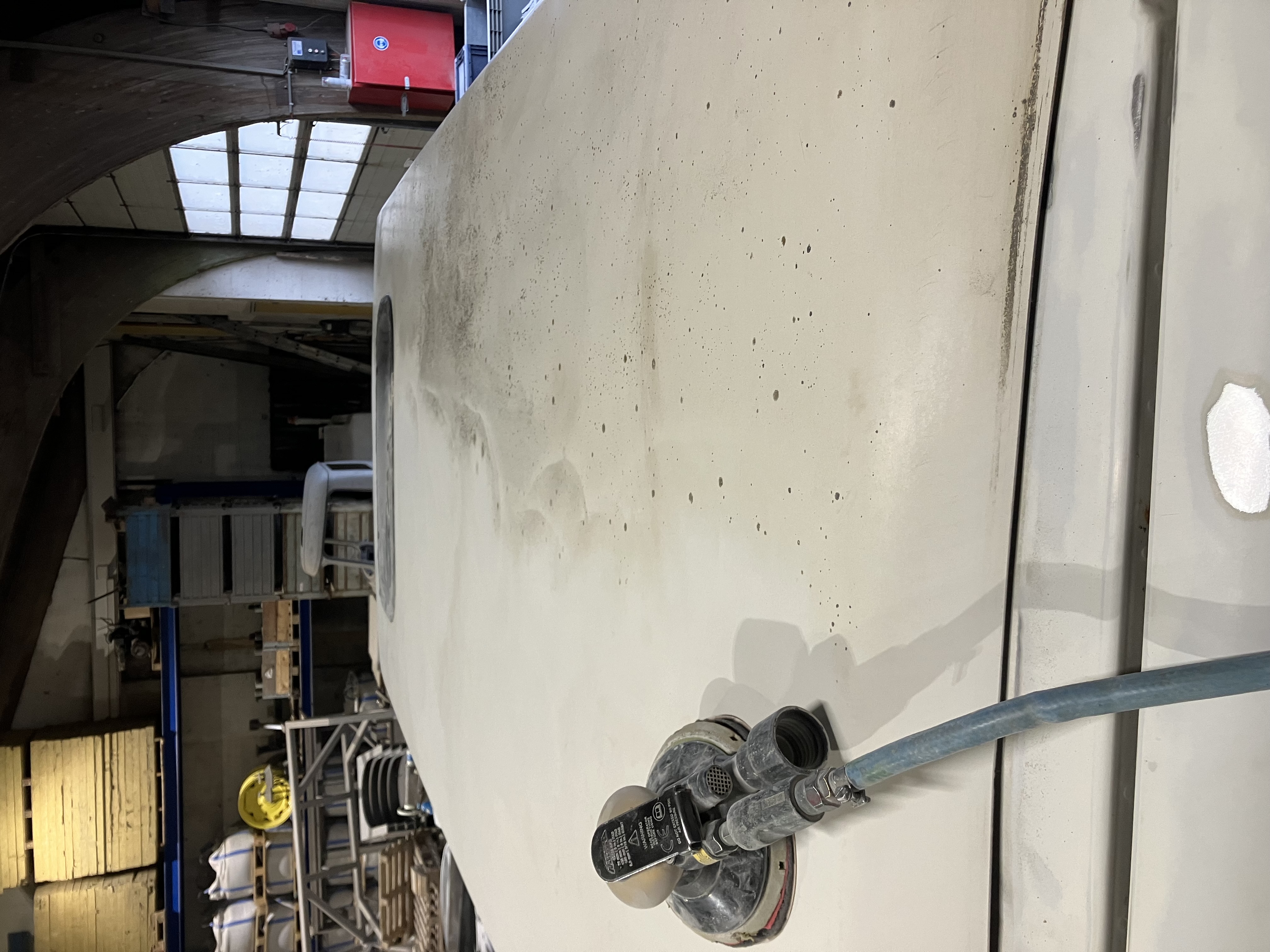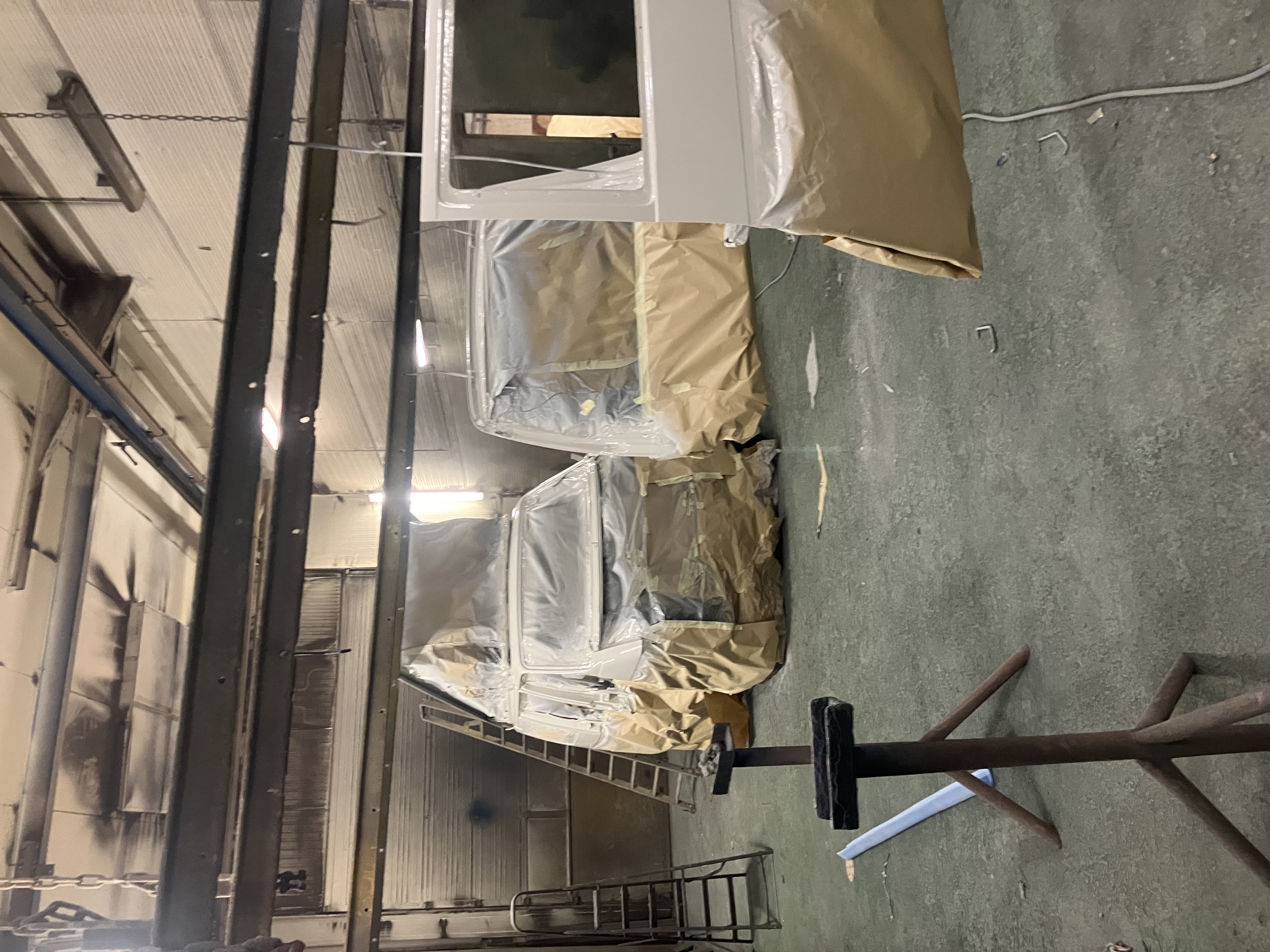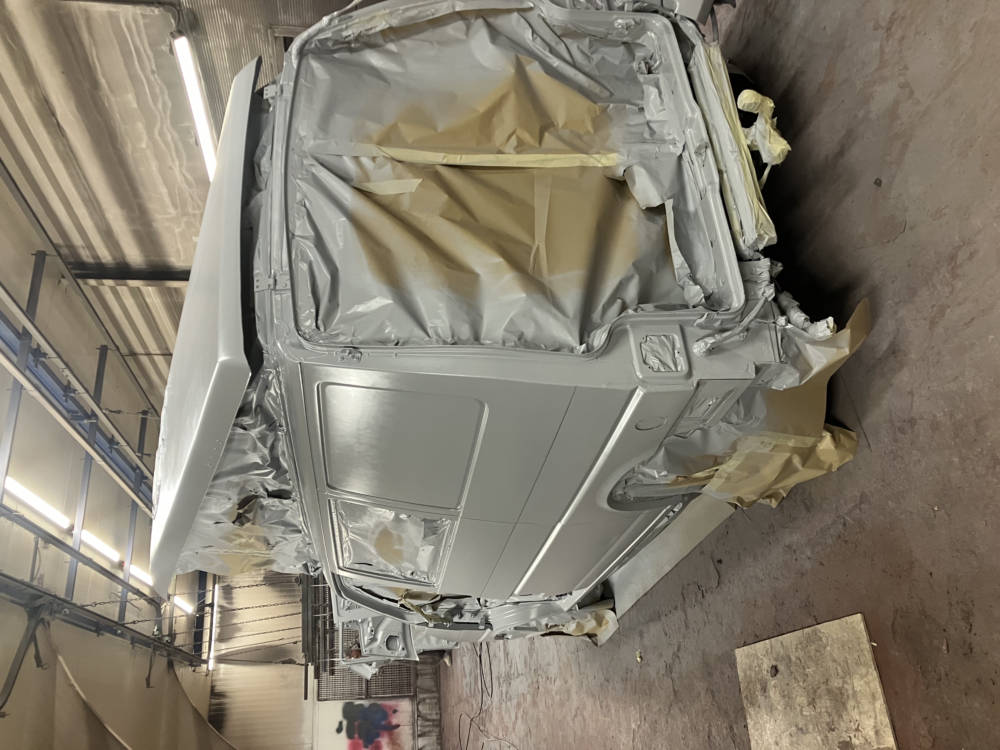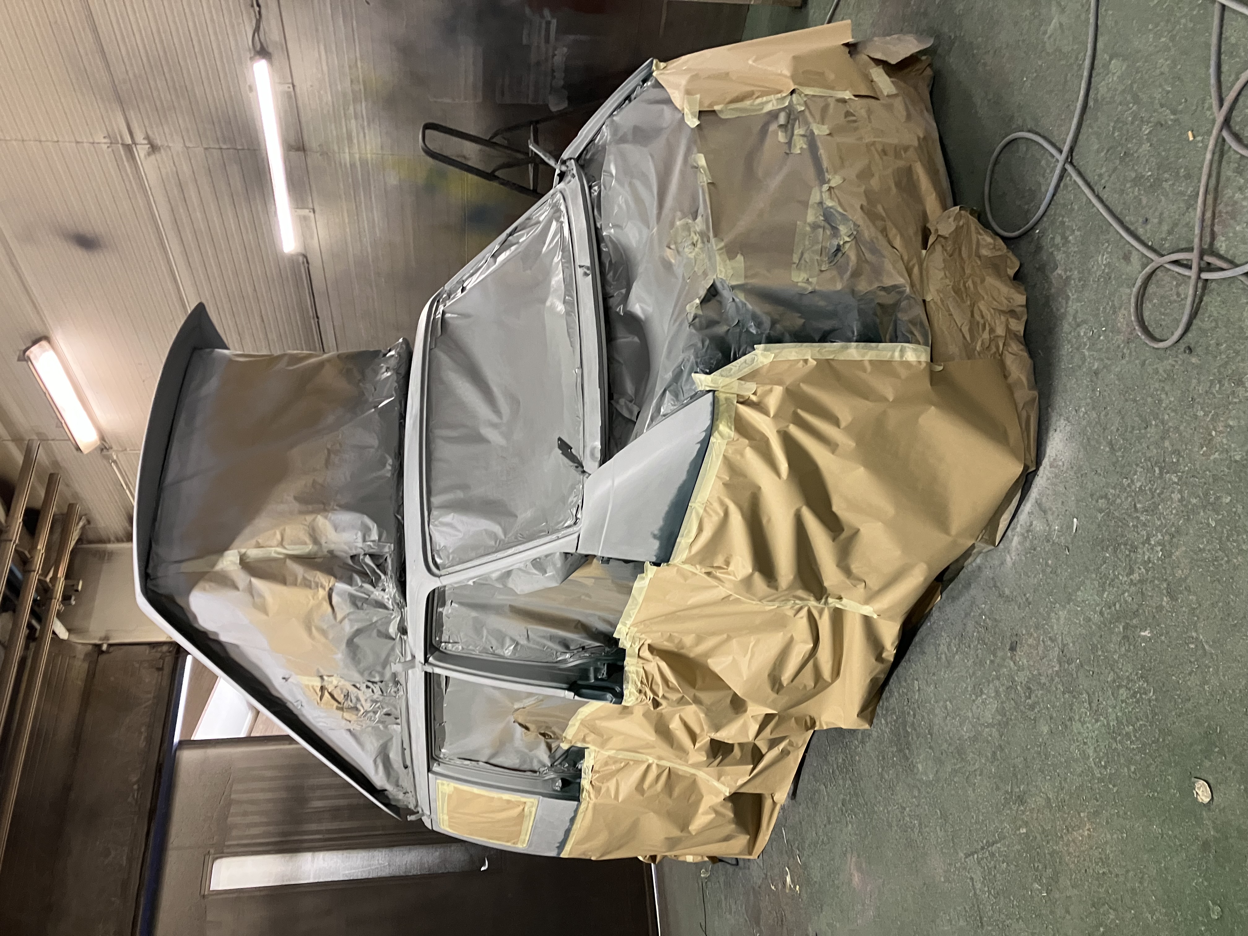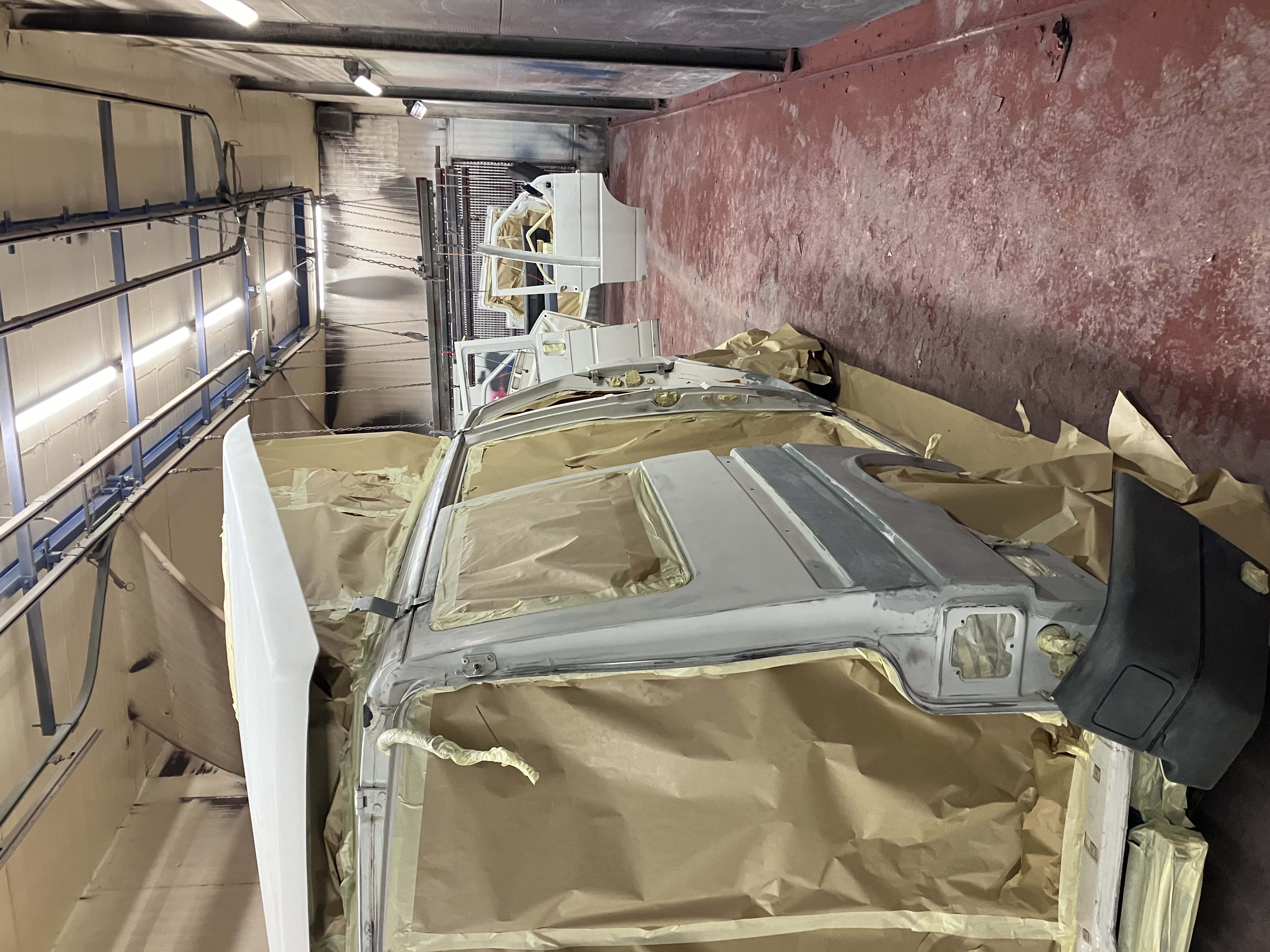 Na het grote laswerk, herstel A stijl en paravan vervanging, bij de spuiter alle voorbereiding qua schuren zelf gedaan. Ook hefdak geschuurd. Daarna afgeplakt en is er laag epoxy primer op gegaan.
