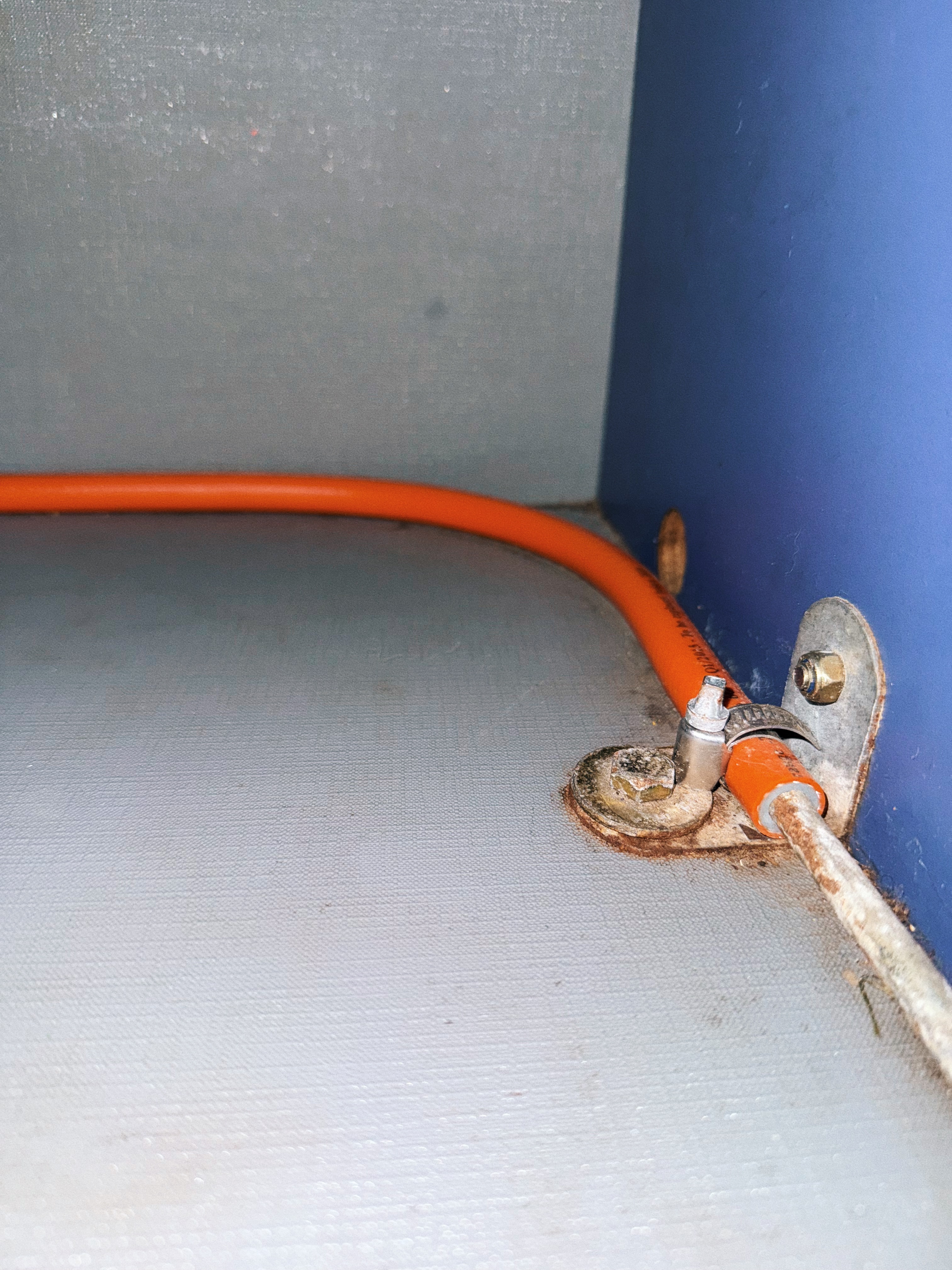 Oke, hierbij het vervolg van het gasslang debacle van vandaag. Op basis van de antwoorden van @chv en @Hanz begon ik toch een beetje te twijfelen. We liggen immers met onze hoofden praktisch naast de gasfles. En gezien de ruimte geen directe verbinding heeft met buiten en er wél een directe verbinding met electra is heb ik besloten om voor nu de gasfles en slang zin zijn geheel te verwijderen. Was nog een heel gedoetje, want de slag liep van achter de bus, onder de koelkast door naar de stalen buis onder het gasfornuisje. Al met al gelukt!
