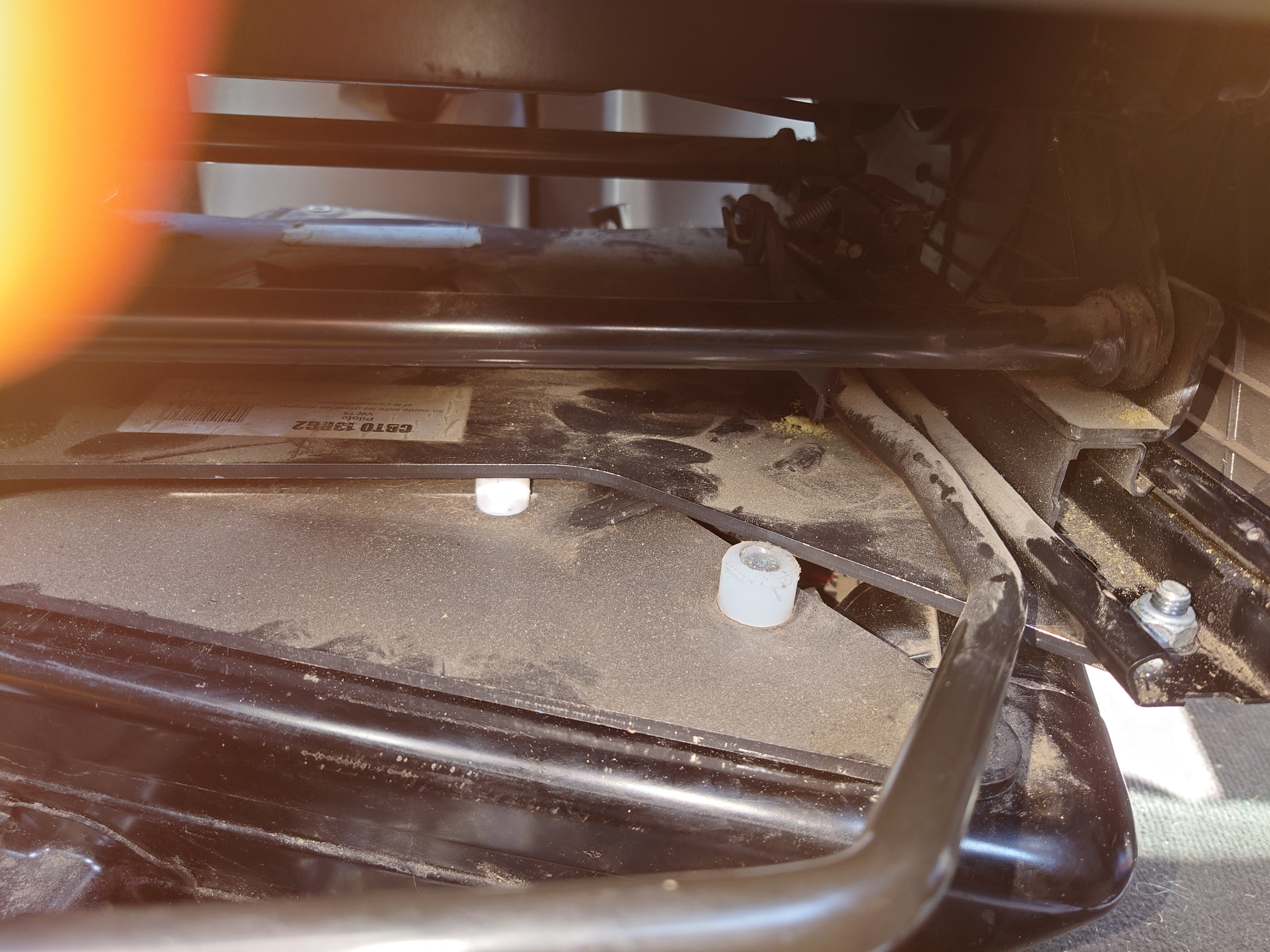 Ik heb een setje 2de hands draaiplateaus van scopema gekocht voor de t5. Nu heb ik echter als ik de bestuurderstoel draai dat hij aan loopt op de witte blokjes. Dus moet je de stoel iets optillen om hem er overheen te krijgen.