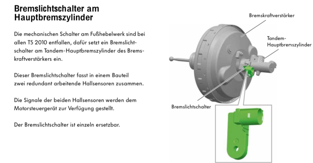 Waar vind ik echter de remlichtschakelaar in een T5 GP uit 2012?