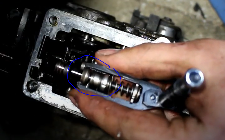 het is inmiddels gelukt, heb beide asjes/veerconstructie bekeken en die van de 'nieuwe' pomp heeft iets meer windingen in de laatste veer(blauw omcirkelt) het asje die bij die pomp hoort voorzien van nieuwe 0-ring en alles draait weer.