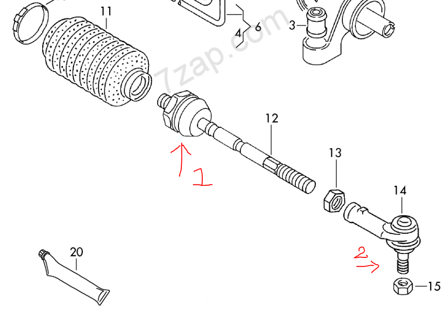 Ja klopt, jij hebt de buitenste stuurkogel waarschijnlijk vervangen. (nummer 2). Als ik mij niet vergis is de binnenste stuurkogel nr 1, waar ook speling op zou kunnen zitten. Dit kan je dus controleren.