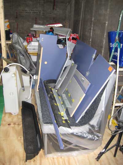 De keukenkastjes moesten ook leeg, onder ander de gaskist en vuilwaterafvoer hebben een doorvoer naar de onderkant en moeten eruit anders breekt dat af.