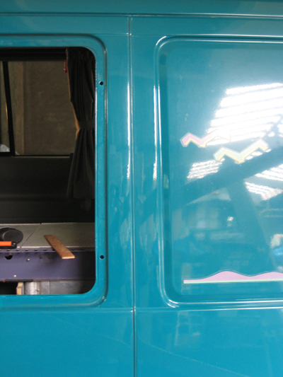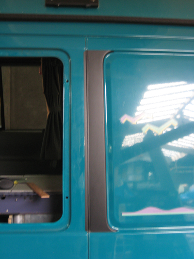 Maar goed, ben blij dat ik de klus heb kunnen klaren. Nu hopen dat het weer een jaar of 16 ertegen kan. Bekledingspanelen langs het dak laat ik nog even eraf, want het speakerkabeltje naar achteren heb ik nog niet eens kunnen plaatsen. Het extra rubber profiel bij de schuifdeur wacht nog op de plaatsing van de vloer... en ... en ... genoeg te doen nog.