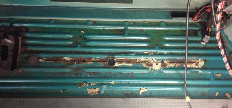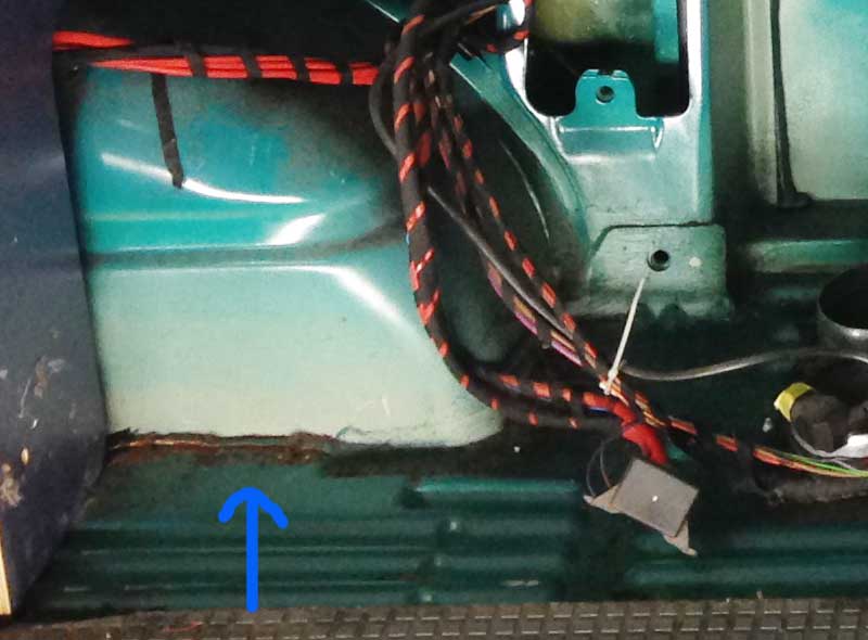 Maar het meeste onheil komt echt 'van buiten'. Steenslag en rommel dat in de wielkasten blijft hangen geeft het grootste deel van de problemen, daar ben ik echt van overtuigd. Plus een hele hoop onzinnige constructiedetails die niet hadden gehoeven. zoals de hierboven beschreven naad onder mijn keuken afgewerkt met carosseriekit.