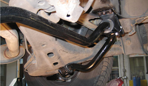 die bevestiging op de as krijgt het vrij zwaar te verduren, maar die op het chassis doet niet veel meer dan de stabie op zijn plek houden, de krachten daarop zijn (zeker in vergelijking met de krachten op de bevestiging aan de as) niet zo groot