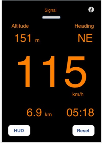Car Dashboard voor de snelheidsmeting via GPS. Scheelt al gauw 7 km met de teller van de bus.