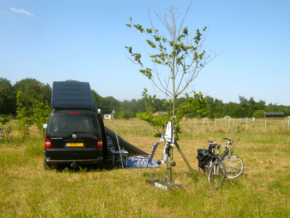 Het hemelvaartweekend naar Leende bij Eindhoven geweest. Onze dochter die afstudeert een paar dagen ondersteund en geholpen. We hebben overnacht op een wel heel bijzondere camping. http://www.tentkamperen.nl/" onclick="window.open(this.href);return false; Een flink aantal kleine campings zat dit weekend natuurlijk al vol, maar hier was plek zat. Camping is eigenlijk bedoeld voor tentkampeerders maar een kampeerveld in wording, de Fuut, was ook bereikbaar voor Campers. Je staat op een ongemaaid grasland tussen de wilde bloemen met een zee aan ruimte. Heel bijzonder. Prachtige fietsomgeving met Leender bos en Leender heide. We zijn ook nog even de grens over gegaan.