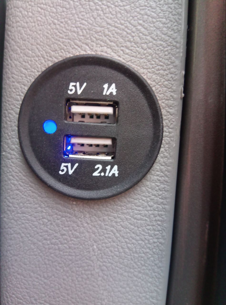 Mits wat zaag en vijlwerk voldoende grote opening gemaakt, daarin USB-bus gemonteerd, de bekabeling van de DIN-stekker voorzien van correcte connectors, opletten met correcte plus en min (bruine kabel is min), en vervolgens het geheel terug monteren. Ziet er behoorlijk uit, en applaus op de achterbank krijg je er bovenop!