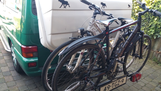 Ik heb ivm ruimteproblemen in de T4 enkele jaren geleden een bagagebox van fiamma aangeschaft. Deze zit bij mij op de achterklep echter wil ik ook graag de fietsen meenemen. Dit was altijd een lastige keuze totdat ik deze winter een 4 persoons fietsendrager van prouser type saffier IV heb aangeschaft. Het was een gok of ik op deze manier 1 fiets kon meenemen. Mooier zou nog zijn 2 fietsen maar de praktijk leert mij dat er nu 2 fietsen meekunnen