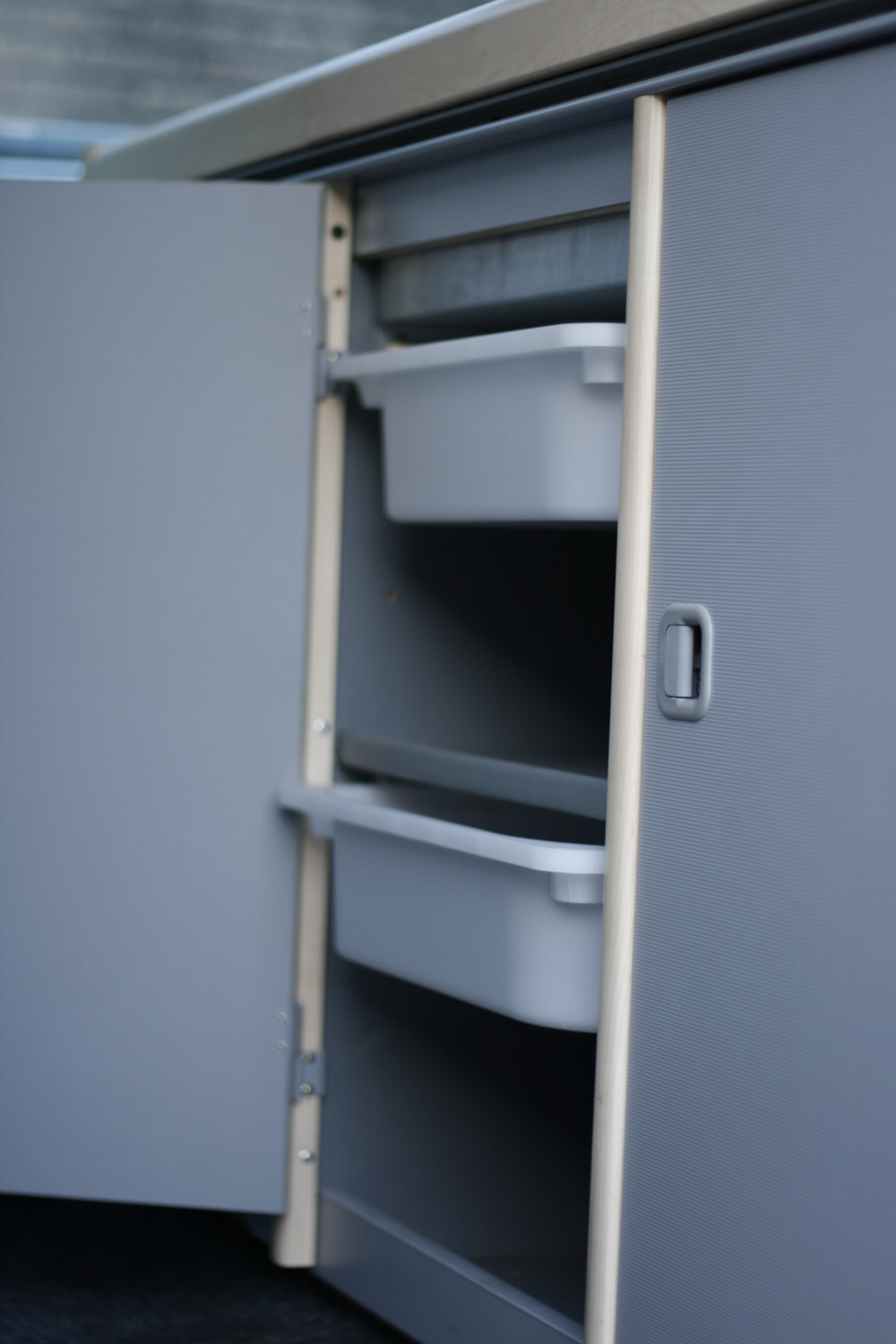 2e voordeel is dat dit kastje op de camping als tafel kan dienen (extra los blad gemaakt die met ronde blokken in de bekerhouders passen )