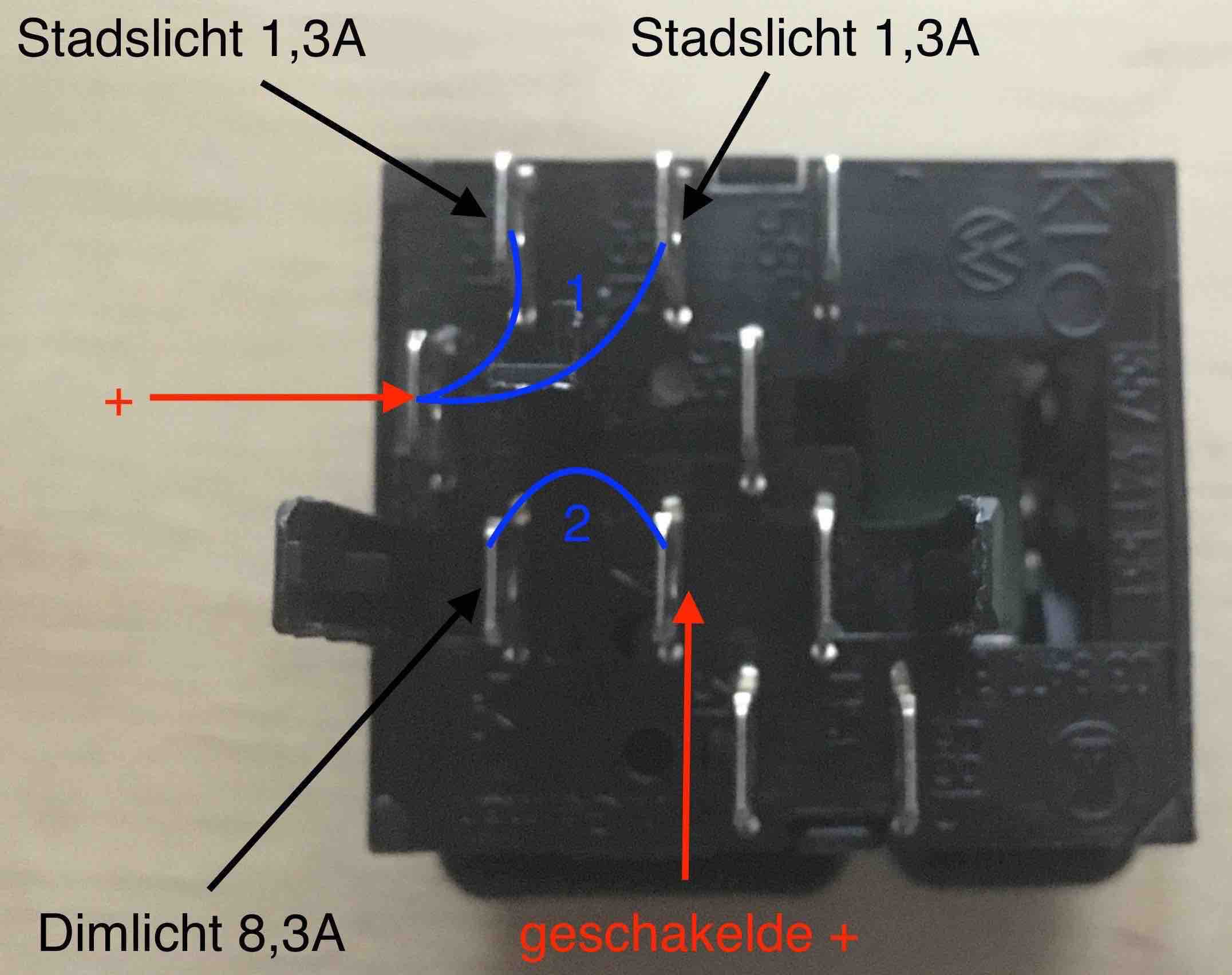 Plaatje 2 wat doet relais 18 op plaats 4? schakelt precies wanneer de lichten aan gaan en net voor de controle lampjes op het dashboard gaan branden.