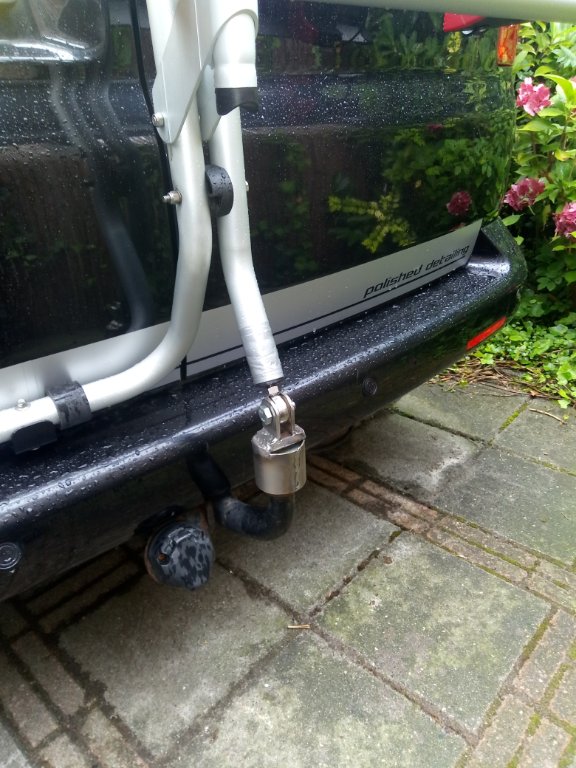 Sorry, ik zie bij carry/ fiamma dat je drager geen demping heeft zoals een klepdrager. Weer eens te snel. Zoals je het nu gemaakt hebt steunt ie niet meer op t mooi gelakte bumpertje.