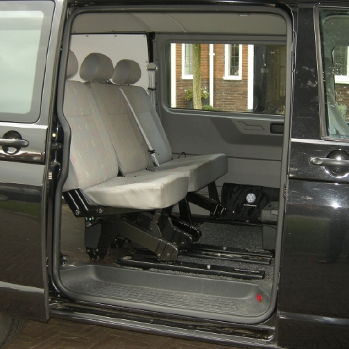 De houten doos vooraan is het toilet. Hiervoor in de plaats kan ook de losse stoel geplaatst worden. Zo heb je weer een 5-persoonsbus.