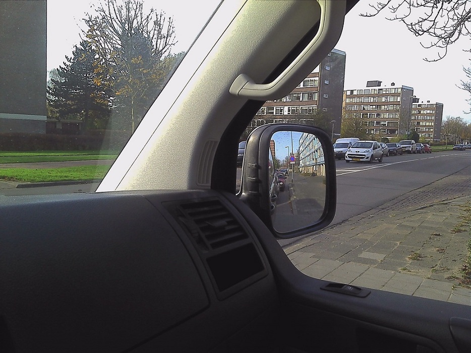enorme DODE hoek bij T5 door spiegel en dikke stijl