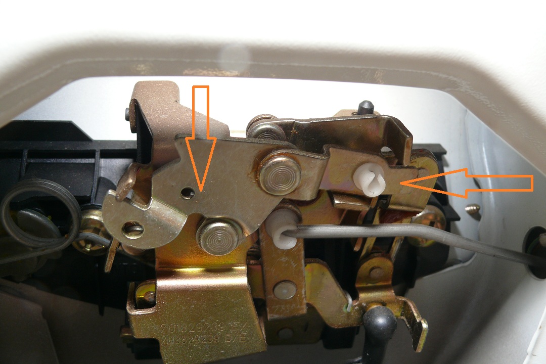 De pijltjes die je hierboven aangeeft zijn voor het stangetje die in het witte geleidertje past als je handmatig de deur open wil doen van binnenuit ...heb je dat, dan mis je wat ...speur goed op t4 wiki dan leer je veel over de T4 ...