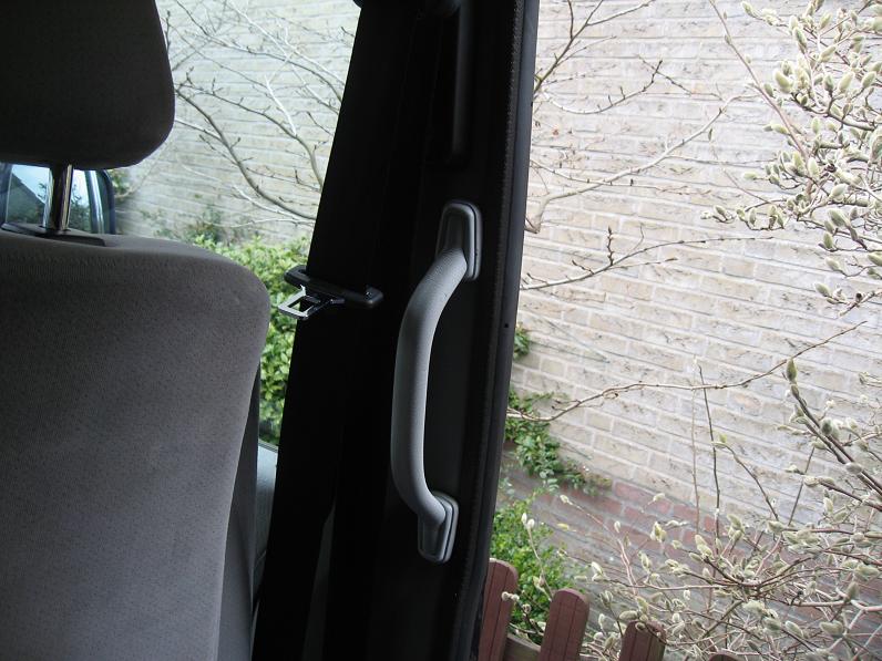 Harry ik heb jouw foto,s gezien en heb intussen ook al de handgreep( zelfde als op de foto) vlgs. de dealer ben ik nu nog een beugel (steun) nodig die de ruimte tussen de stijl en bekleding overbrugt! ik kan de greep ook direkt op de stijl plaatsen maar moet dan de bekleding bewerken (gaten in maken).komt tijd komt raad ! vriendelijke groet.Bert