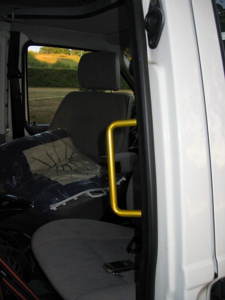 Harry ik heb jouw foto,s gezien en heb intussen ook al de handgreep( zelfde als op de foto) vlgs. de dealer ben ik nu nog een beugel (steun) nodig die de ruimte tussen de stijl en bekleding overbrugt! ik kan de greep ook direkt op de stijl plaatsen maar moet dan de bekleding bewerken (gaten in maken).komt komt raad ! vriendelijke groet.Bert