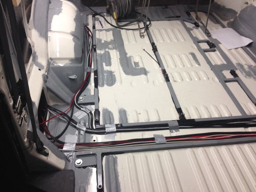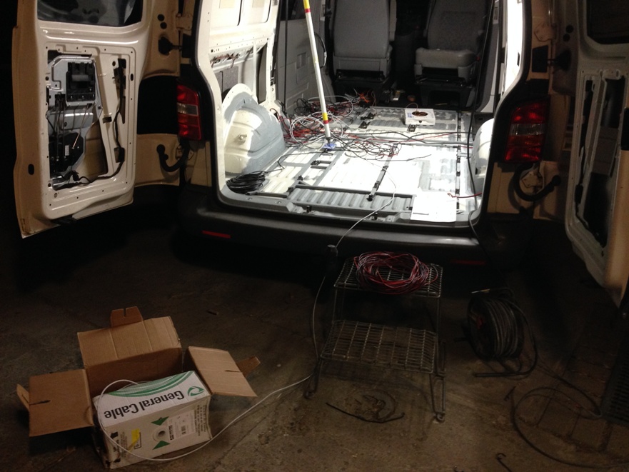 het volgende dat gaat gebeuren is dat de plank er weer uitgaat en de vloer vol gelegd gaat worden met kabels en isolatie.
