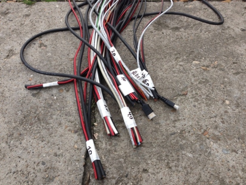 Daarna de kabels er weer uit om te labelen. alke kabel appart gelabeld omdat ze op 1 punt gaan samenkomen.