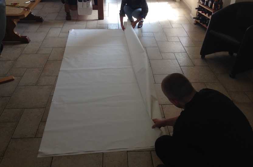 Eenmaal thuis passen en meten en een luifel op maat. ± 2,5m x 3,5