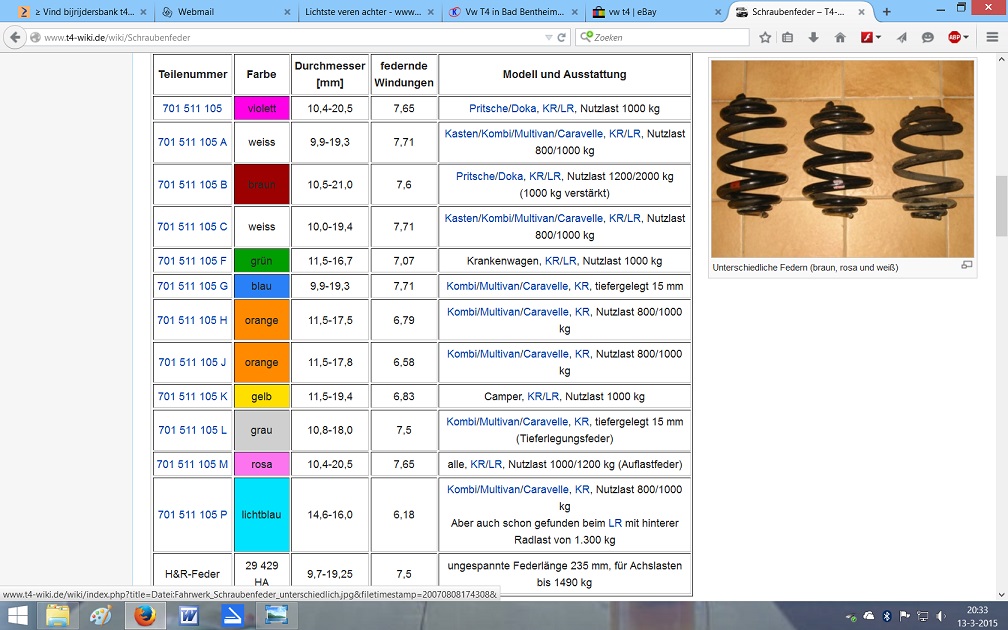 Mijn T4 2.5 TDI uit 2000 is een korte uitvoering. Hij is omgebouwd tot camper. De inbouw is erg sober, net voldoende om de bus officieel als kampeerwagen te kunnen rijden. Ik rijd er eigenlijk altijd alleen met mijn twee honden in. Ik vroeg me af of er verschillende achterveren bestaan voor mijn busje. Ik zou de lichtste namelijk willen hebben zodat hij zo comfortabel mogelijk geveerd is.