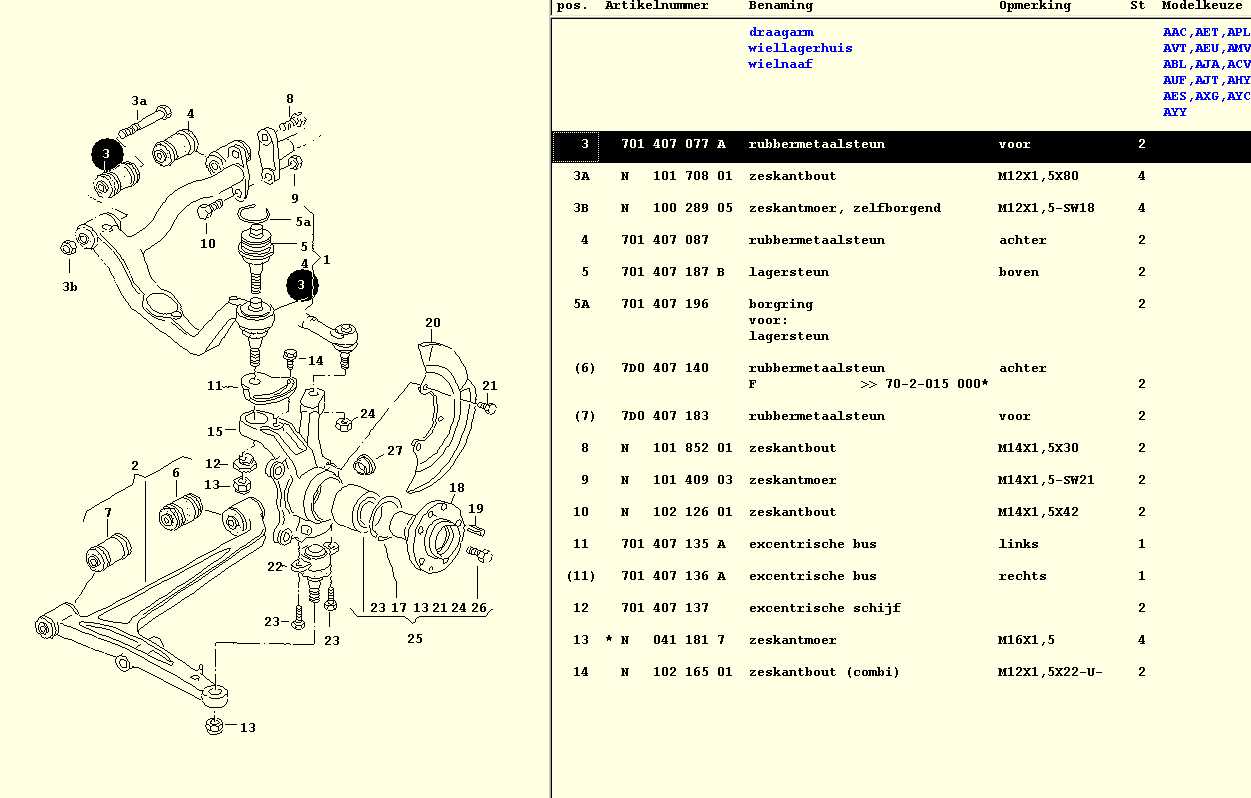 Hallo, mijn T4 uit 2002, 102 pk, heeft sinds een week een raar knakkend/tikkend geluid bij in en uit veren vd auto, het lijkt onder de bestuurdersstoel vandaan te komen. Heb alle twee (!) de fuseekogels rechts vervangen, links al de stuurkogel, op al deze kogels zat namelijk aanzienlijke speling dus dacht......that's it. Helaas dus niet, het vervelende is ook dat het soms even weg is en dan ineens is het er weer bij in en uit veren vd auto.