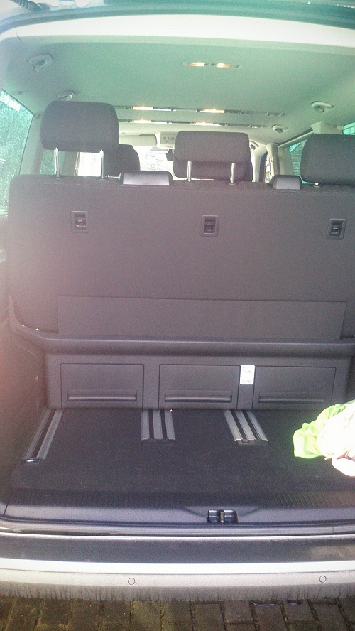 Ik ga wel eens bekijken of ik de 3-zitsbank bank kan plaatsen op de eerste rij, tijdens vakanties dan toch, want bij de bank heb je veel meer vrije ruimte onderaan ....gelukt! 3 zitsbank erin en terug opbergruimte onder zetel!