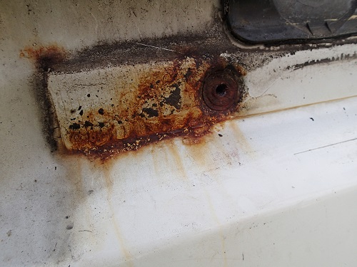 De mijne is ook wit, maar van oktober 2008. Inmiddels overgespoten vanwege roestplekken, waaronder een heel erge roestplek achter de geleiderail van de zijdeur (zie foto). Behalve op deze plekken zag de lak er nog wel oké uit, heb geen primer gezien. Deze auto is pas sinds vorig jaar juni in mijn bezit, dus ik heb geen idee hoe vaak hij gewassen is. Misschien was 2008 een beter jaar qua lakkwaliteit of misschien moet je 'm niet te vaak wassen.jwlos schreef:Ik ben benieuwd of er meer mensen zijn die de grondverf van hun (witte) bus beginnen tegen te komen.