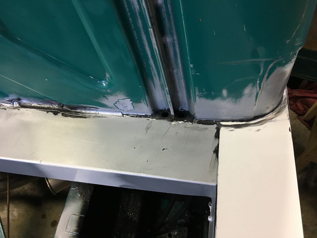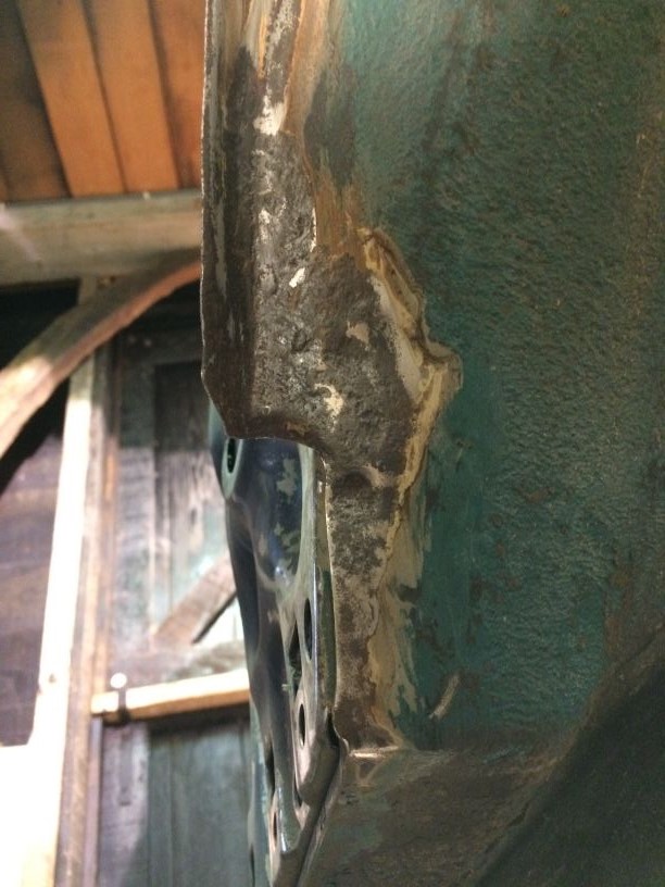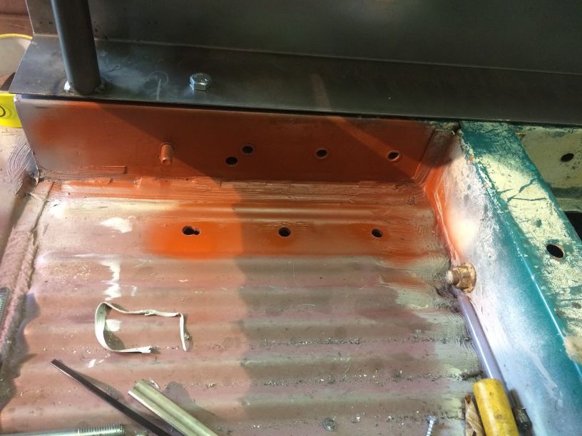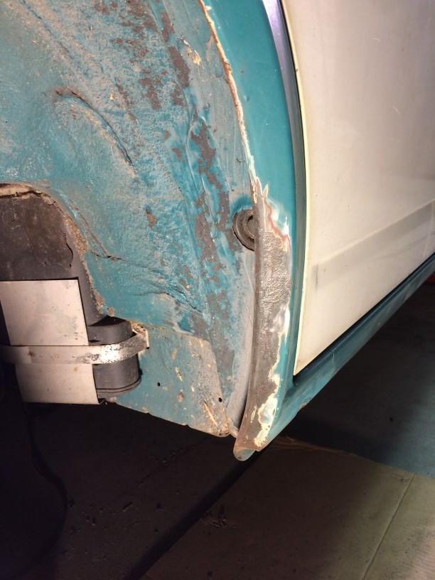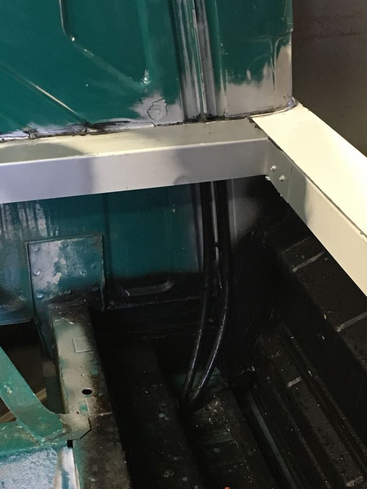 Rollen dus….Als het werkt zou het een goedkoop en snelle oplossing zijn. Ik kon niet de hele auto in 1 keer klaar maken om te verven dus de meest belangrijke stukken geschuurd en verfklaar gemaakt. Het rollen van een autolak is iets apparts! Nergens mee te vergelijken. Net als met spuiten moet je het verschrikkelijk dun aanbrengen. Dat is zoiezo al lastig met een kwast/roller. Dus gaat het wel is te dik, vervolgens druipt hier en daar wat en dan ga je de mist in, want ineens vloeit hij niet meer en heb je een paar lelijke vegen. Ook de temperatuur was bij mij een probleem. Het was goed koud buiten en kreeg het met heeeel veel moeite op de minimale temperatuur van 15gr. Al met al dus niet echt een doorslaand succes. Het kan best goed gaan, maar met iets meer geduld dan ik heb en een mooie zomerdag doet het denk ik ook een stuk beter. Maar voor mij nu dus niet echt. Ook omdat deze lak niet verder gematteerd kon worden. En wat mij betreft is dit nog lang niet mat genoeg. Dit is een soort zijdeglans. Maar goed, het is in ieder geval geconserveerd. Het is nu dus nog even een lapjes kat met allerlei kleuren. Het idee is nu om hem binnenkort in de plastidip te doen en daar dan voorlopig mee rond te rijden. Net voor het verven nog een waterafvoer gemaakt in de kanaaltjes die vanaf de cabine komen.