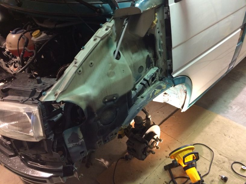 Toen is een rondje op de auto heen gelopen en uiteraard zaten er heel wat “leeftijds” plekjes rondom. Ik ga niet alle schade, deuken en butsen strak maken. Het wordt geen concours wagen. Het is en blijft een werkauto met al een paar jaartjes en km op de klok.