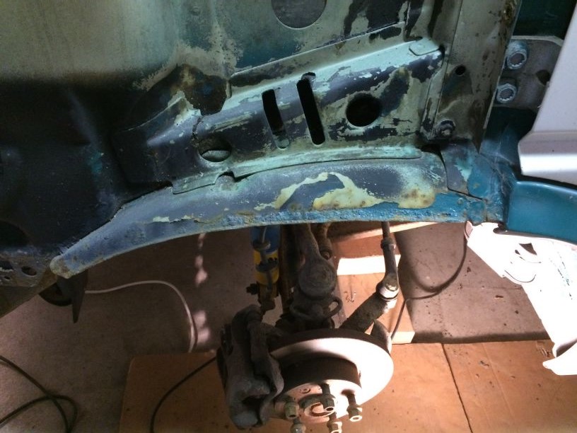 De hele onderkant goed schoon gemaakt en na de kale plekken met primer te hebben gedaan heb ik aan de onderkant eerst alles nog in de strijkkit gezet en daarna alles in de tectyl. Ook de binnenkant van de ombouw en het chassis gedeelte achter de achterbumper lekker dik in de tectyl.
