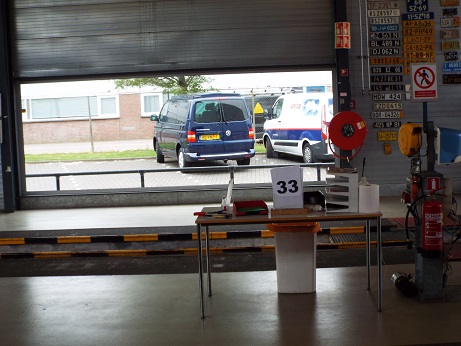 Daarna de hal in, chassisnummer, km stand en hoeveelheid aanwezig brandstof gecontroleerd.