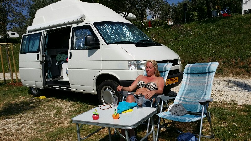 Wij staan ook lekker in Porec op de camping met de T4 Westfalia