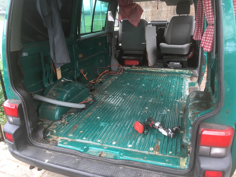 Inmiddels al een dik jaar in het bezit van een t4 camper, al een aantal kampeer tripjes gedaan en dit bevalt super! De camper is een zelfbouw, de ombouw is keurig gedaan maar toch niet helemaal naar wens. De bedbank is een zelfgemaakte bank en deze mag dan logischerwijs ook niet gebruikt worden als zitplaats tijdens het rijden. ik wil toch graag meer personen mee kunnen nemen en daarom besloten om de camper te gaan ombouwen. Er zijn gelijk een aantal punten die ik meer wil gaan aanpakken (isolatie, elektrisch systeem, verwarming, etc). In dit topic wil ik de ombouw gaan bijhouden, tips en advies is altijd welkom!