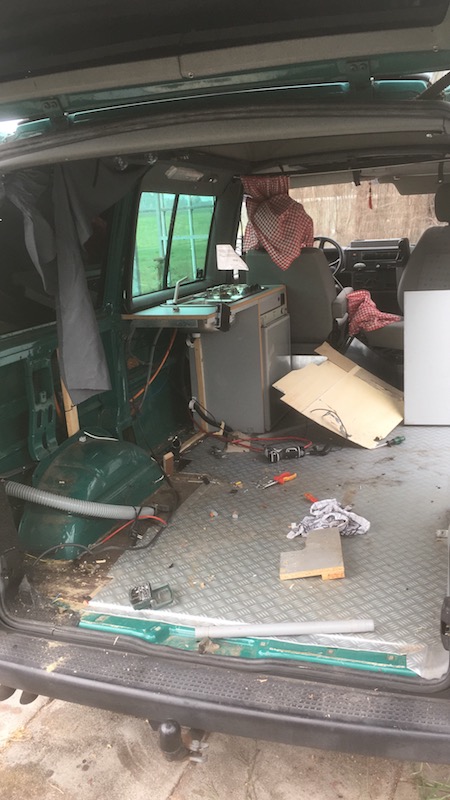 De punten die als eerst prioriteit krijgen is het isoleren en het plaatsen van de nieuwe bank en het bouwen van het bed. Als eerste heb ik de camper leeggehaald.
