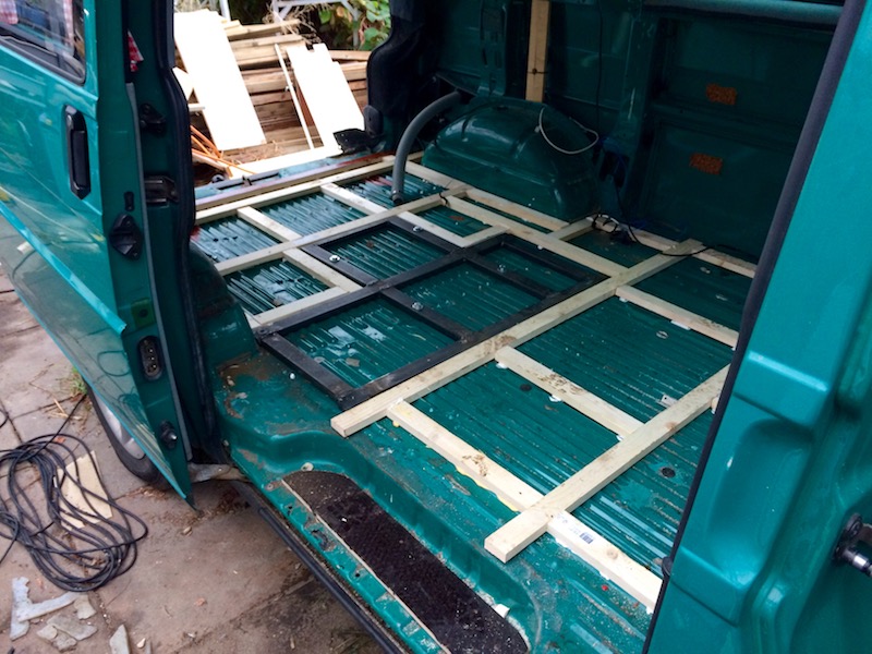 Deze week wil ik het frame maken voor de bevestiging van de bank, en een begin maken met het isoleren.